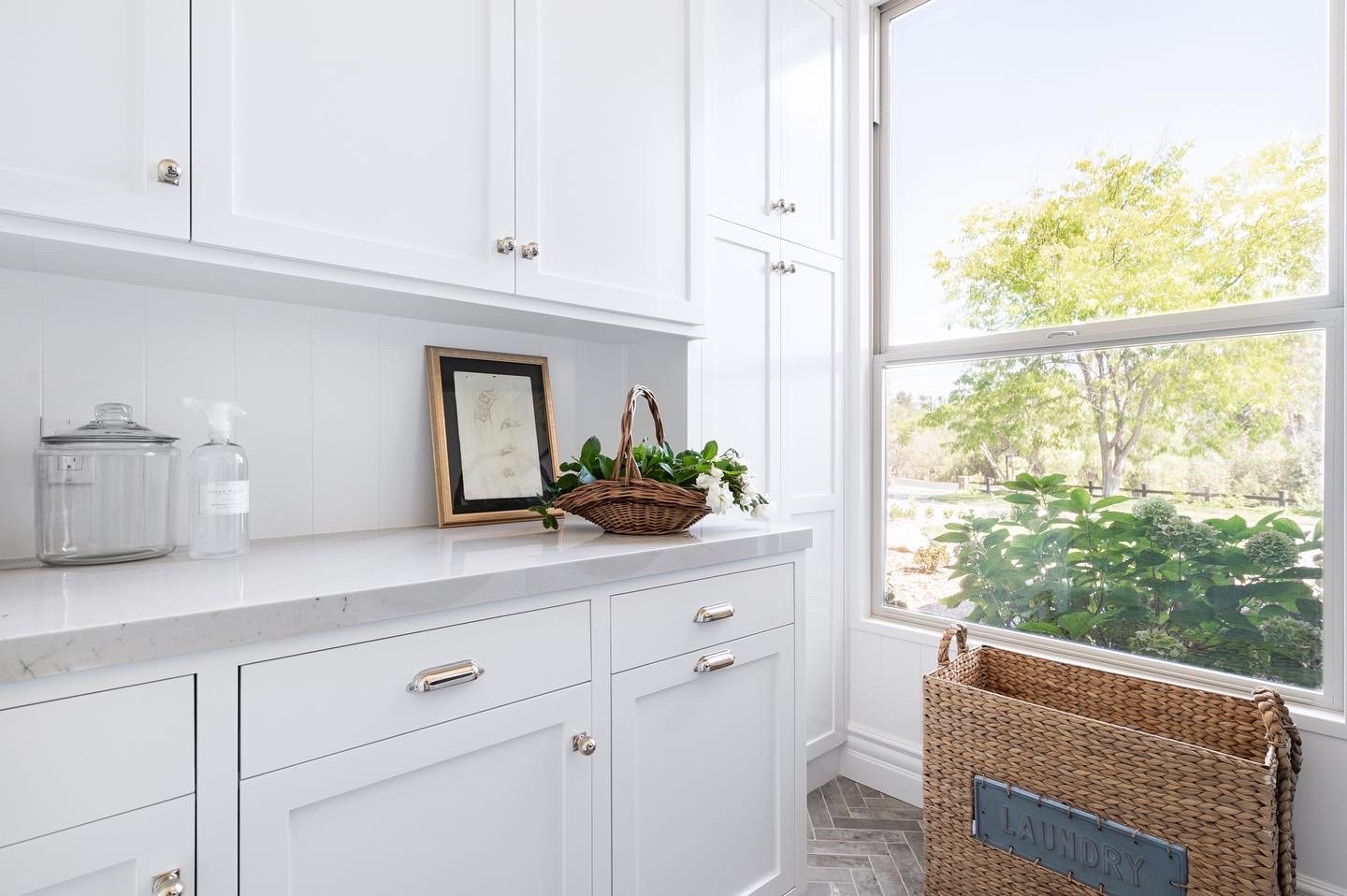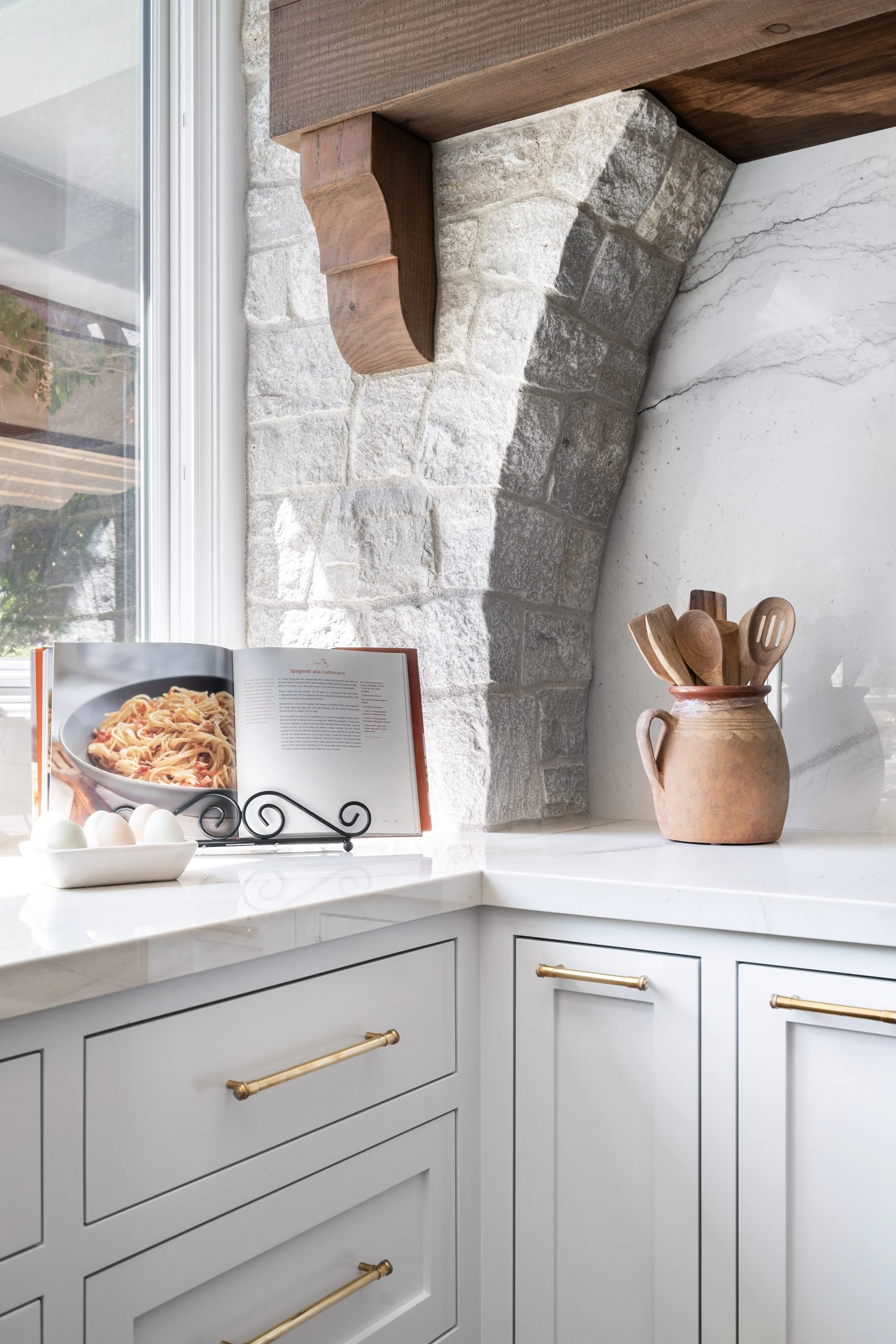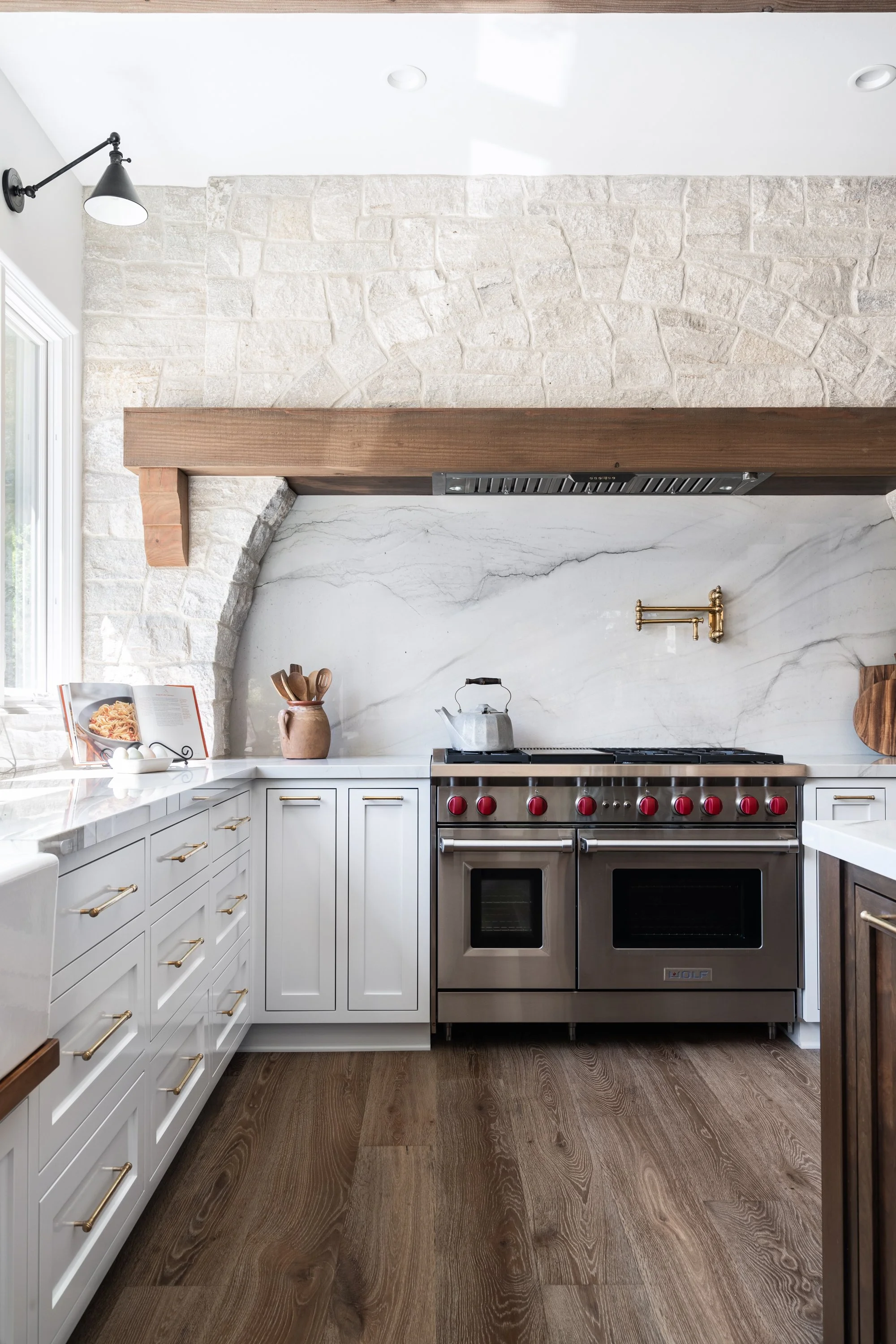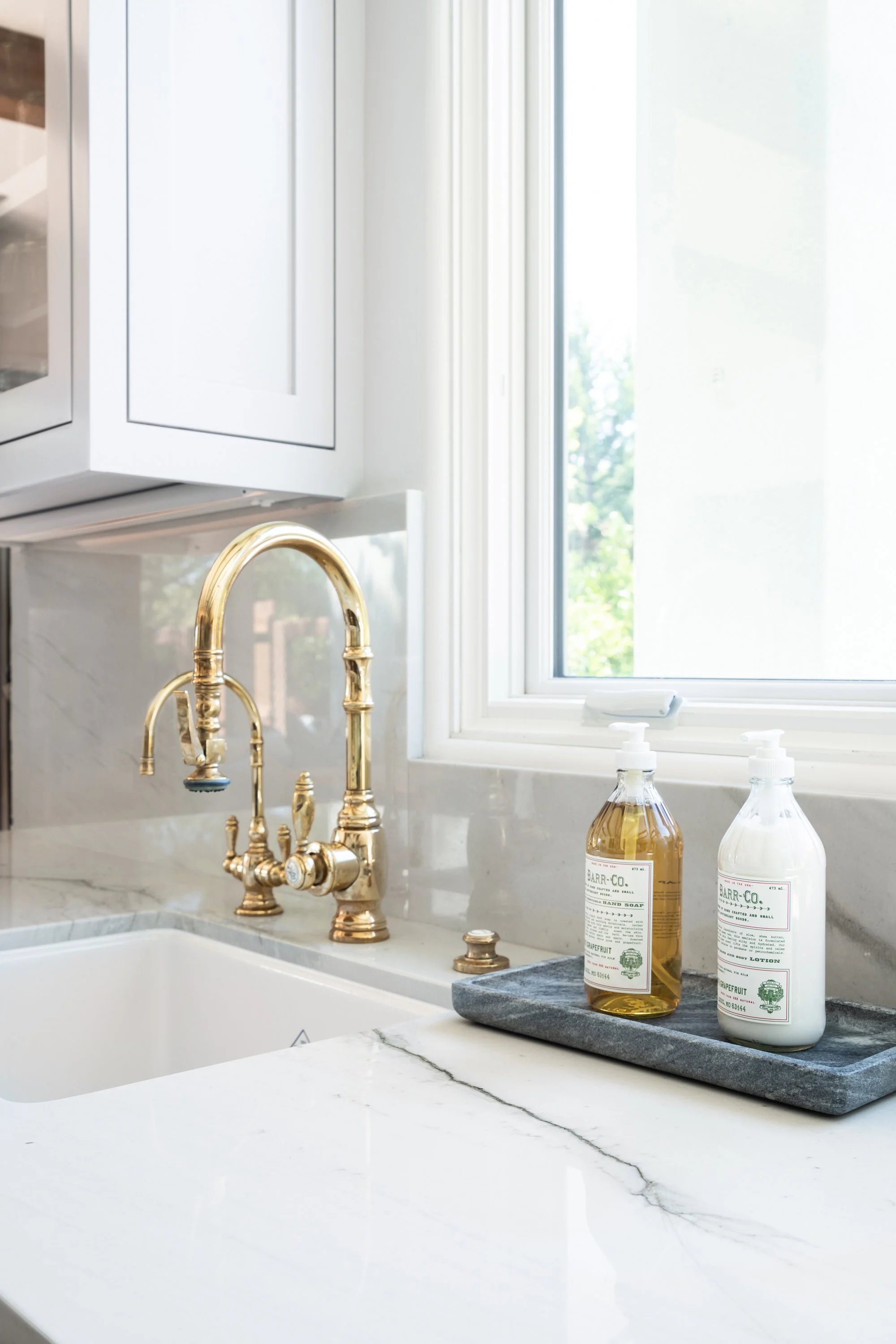 “I’ll start by saying that until this project, I have always relied on my own design sense. I felt comfortable knowing my style and translating it to reality. Given the scope and size of this project, we engaged a designer, Mimi Estelle Studio. Mimi was absolutely amazing, highly creative and professional. She found the balance we were seeking between function, light tones and wood. She challenged us to be bold in our hardware, fixtures, use of stone and arches. The floor plan is mindful of our lifestyle and large family. The result is a highly functional, modern farmhouse with an hint of traditional elegance. We are so pleased and beyond happy with our new space. It’s absolutely stunning and fits us and the rest of the home perfectly. Thank you, Mimi. You’re simply the best!”