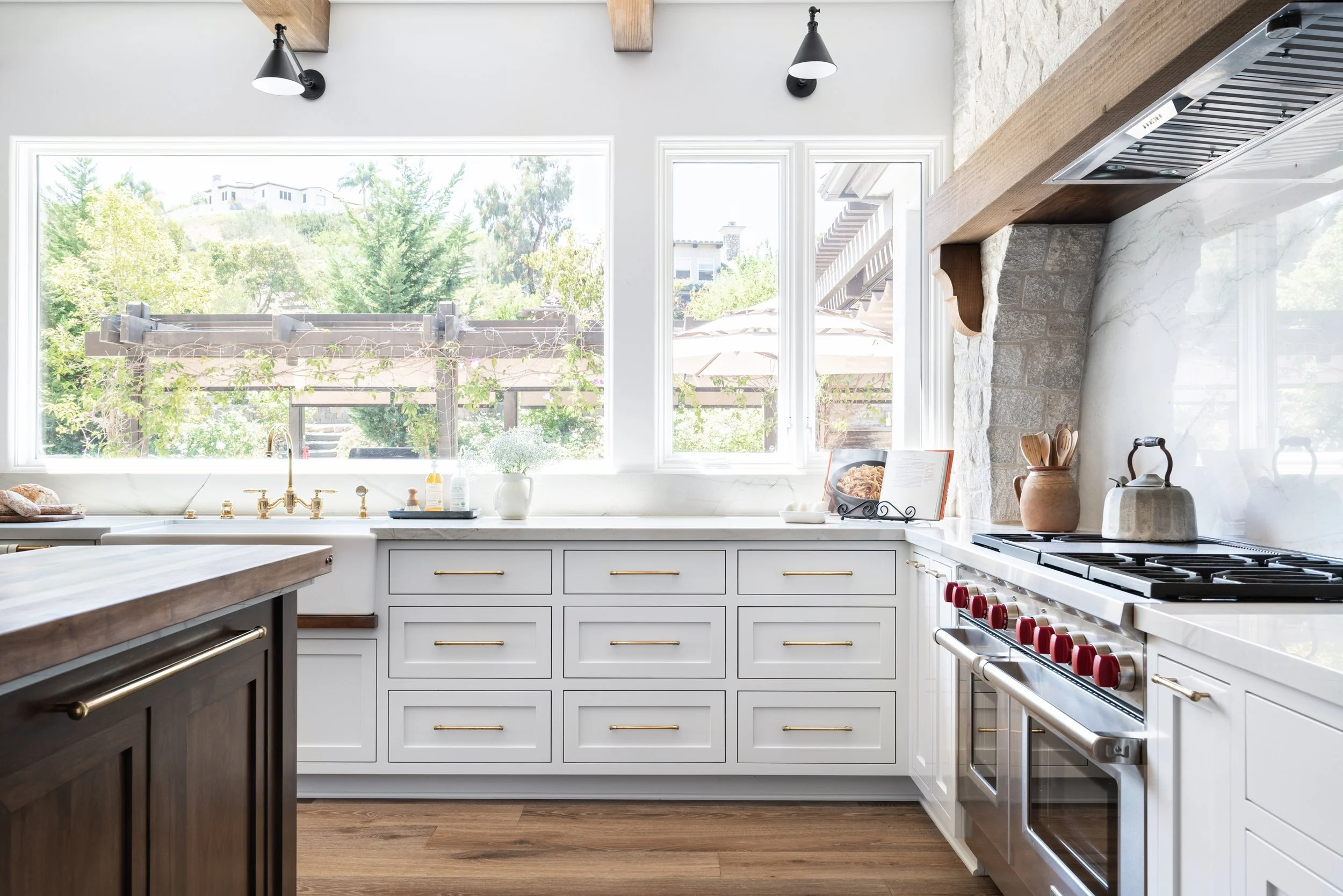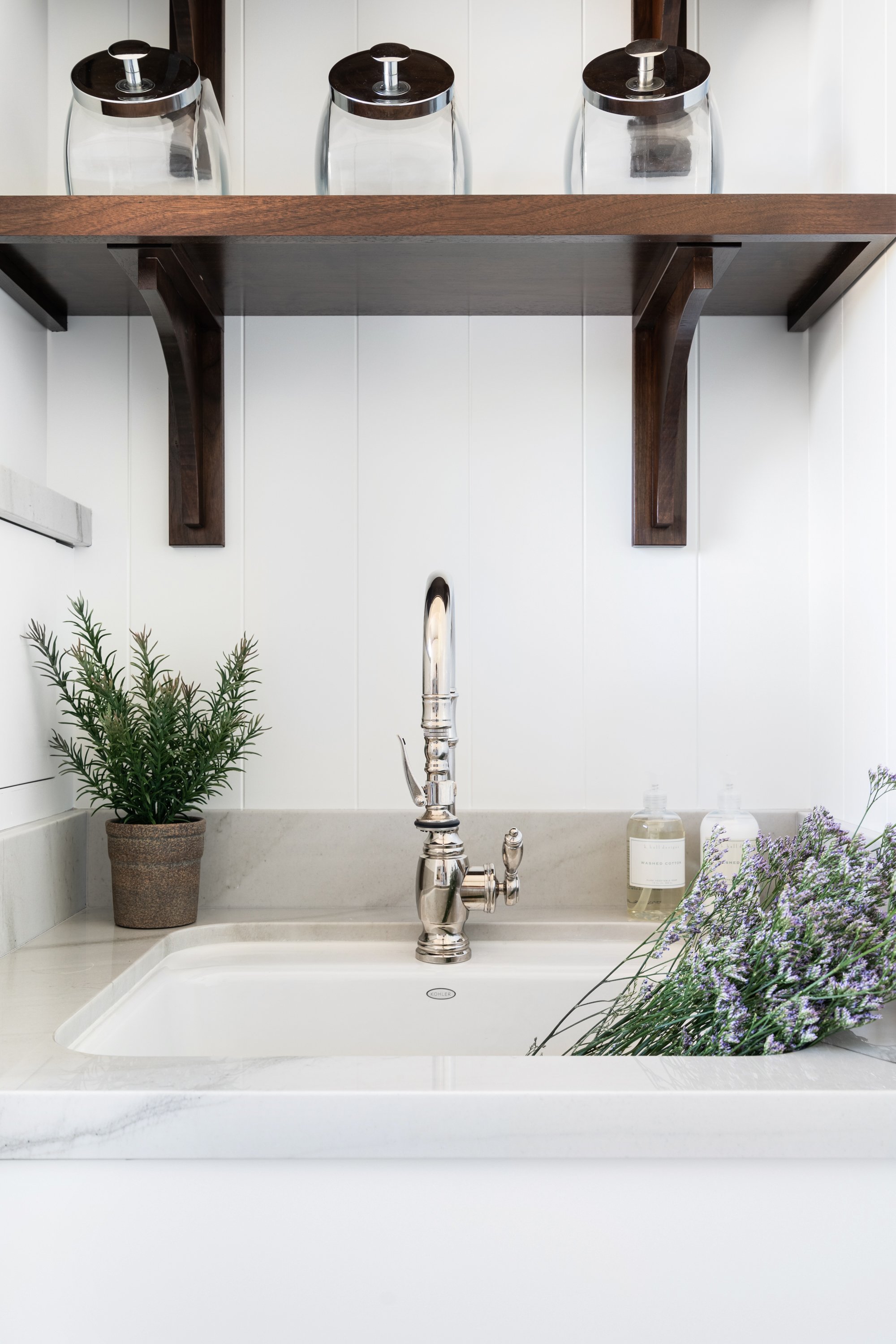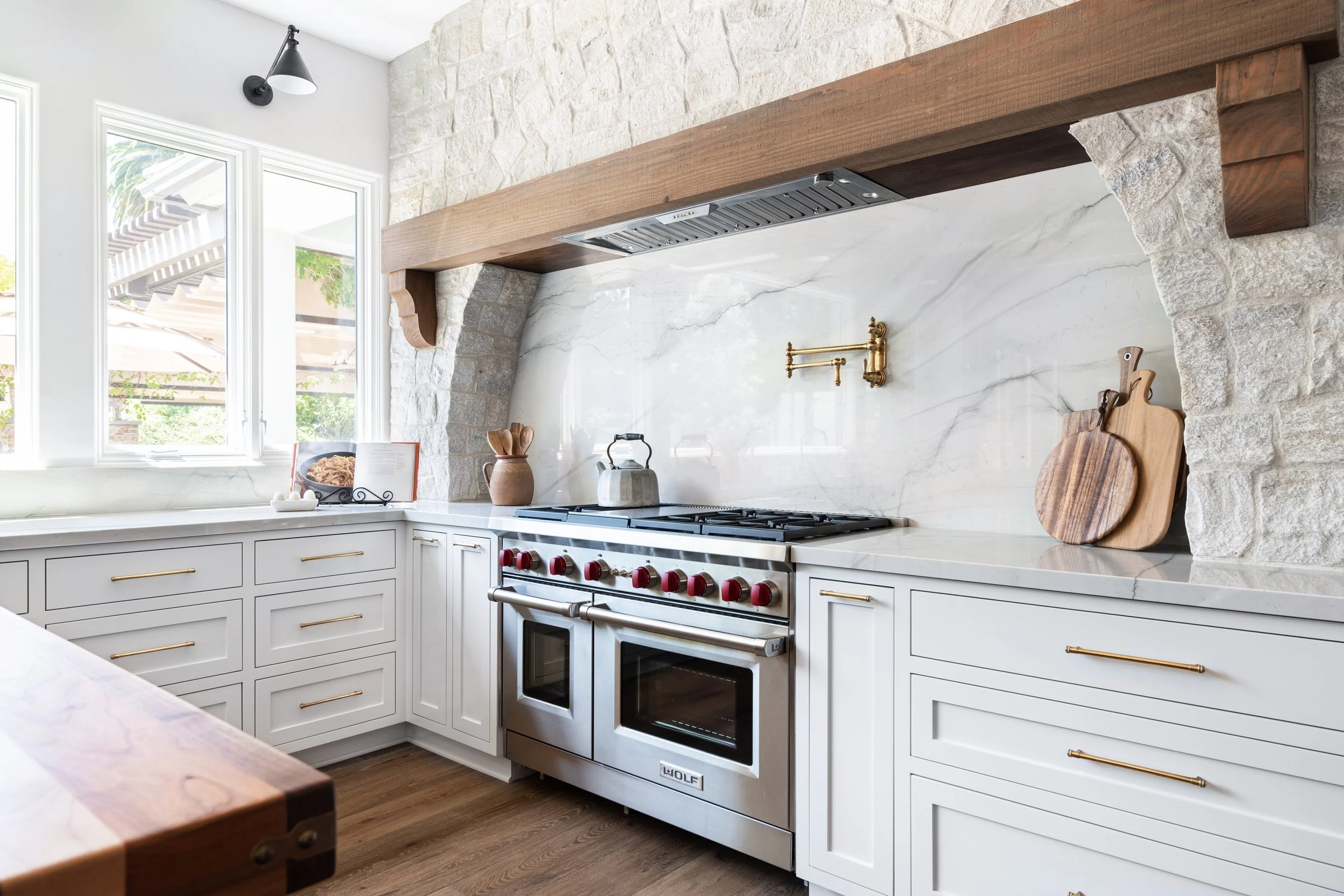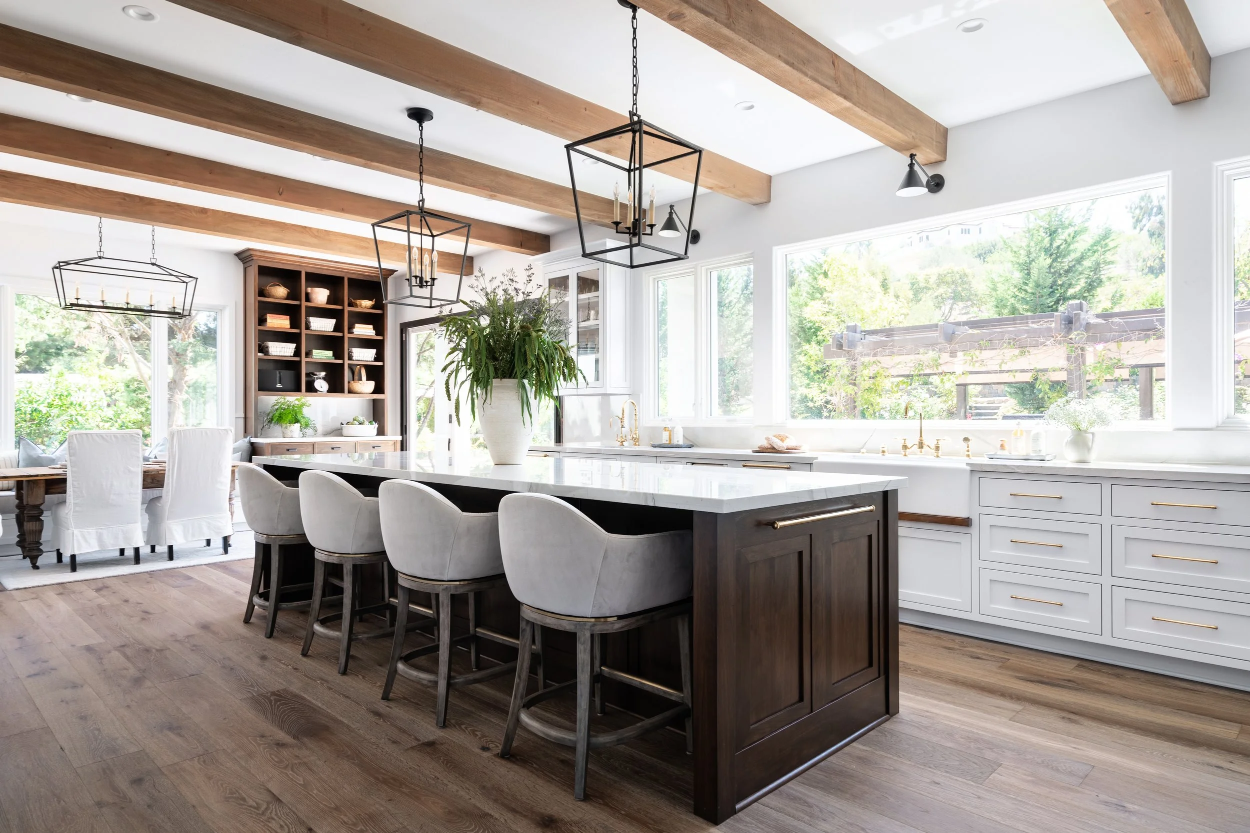 “I’ll start by saying that until this project, I have always relied on my own design sense. I felt comfortable knowing my style and translating it to reality. Given the scope and size of this project, we engaged a designer, Mimi Estelle Studio. Mimi was absolutely amazing, highly creative and professional. She found the balance we were seeking between function, light tones and wood. She challenged us to be bold in our hardware, fixtures, use of stone and arches. The floor plan is mindful of our lifestyle and large family. The result is a highly functional, modern farmhouse with an hint of traditional elegance. We are so pleased and beyond happy with our new space. It’s absolutely stunning and fits us and the rest of the home perfectly. Thank you, Mimi. You’re simply the best!”