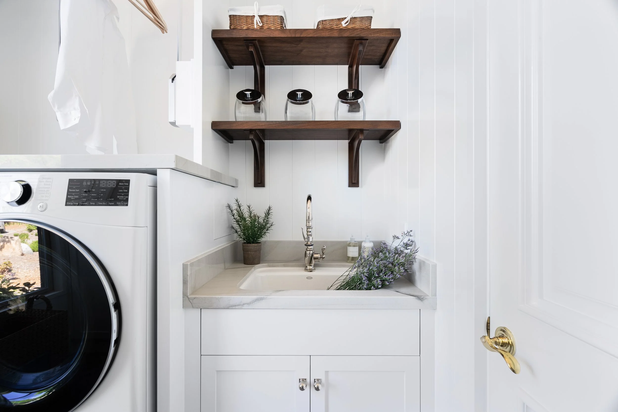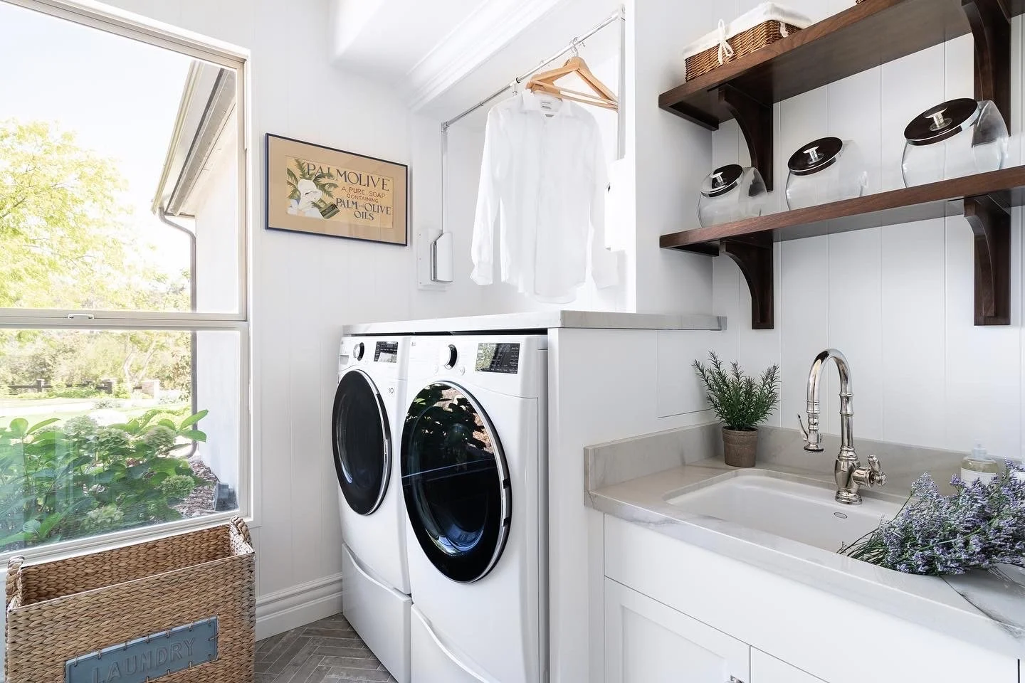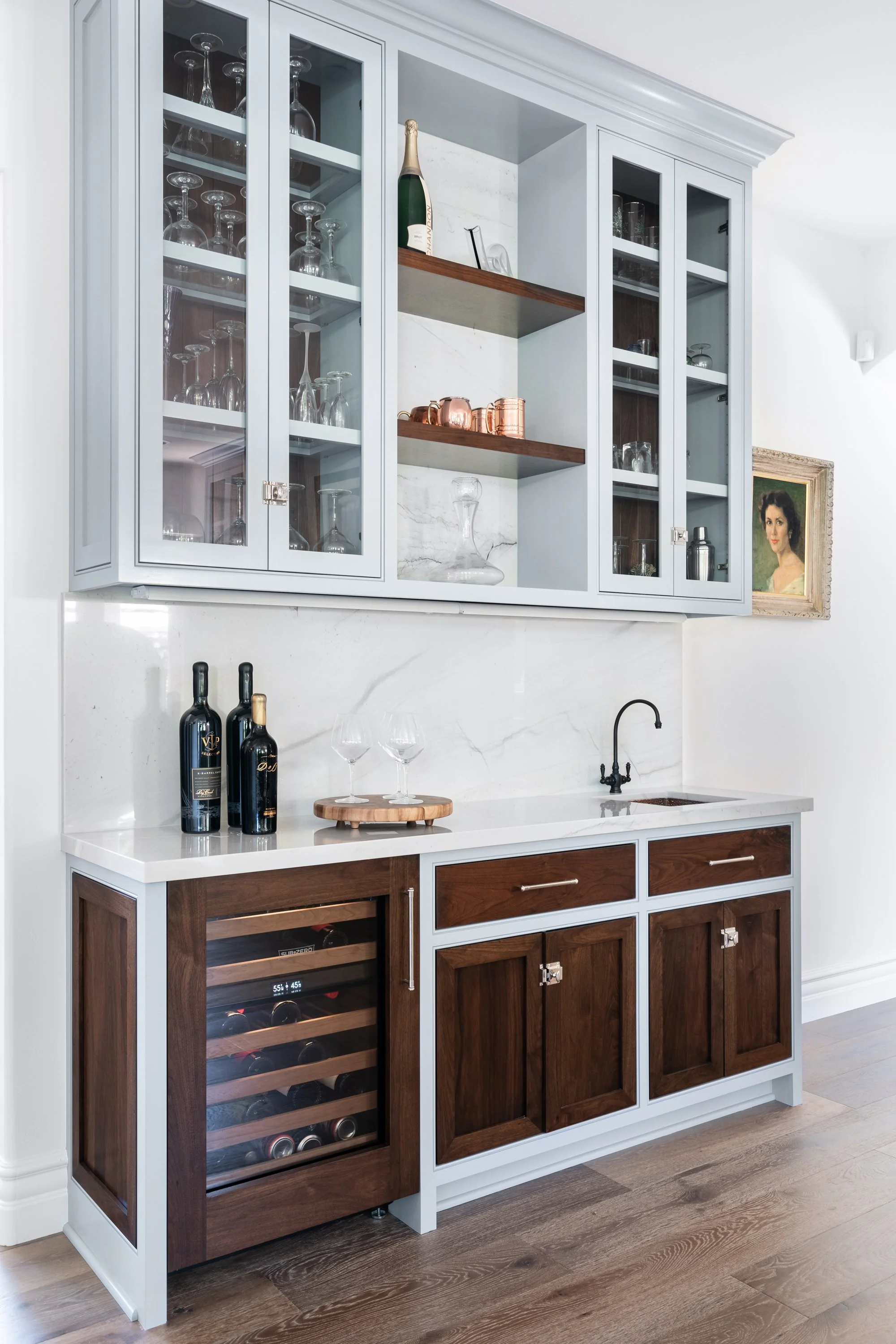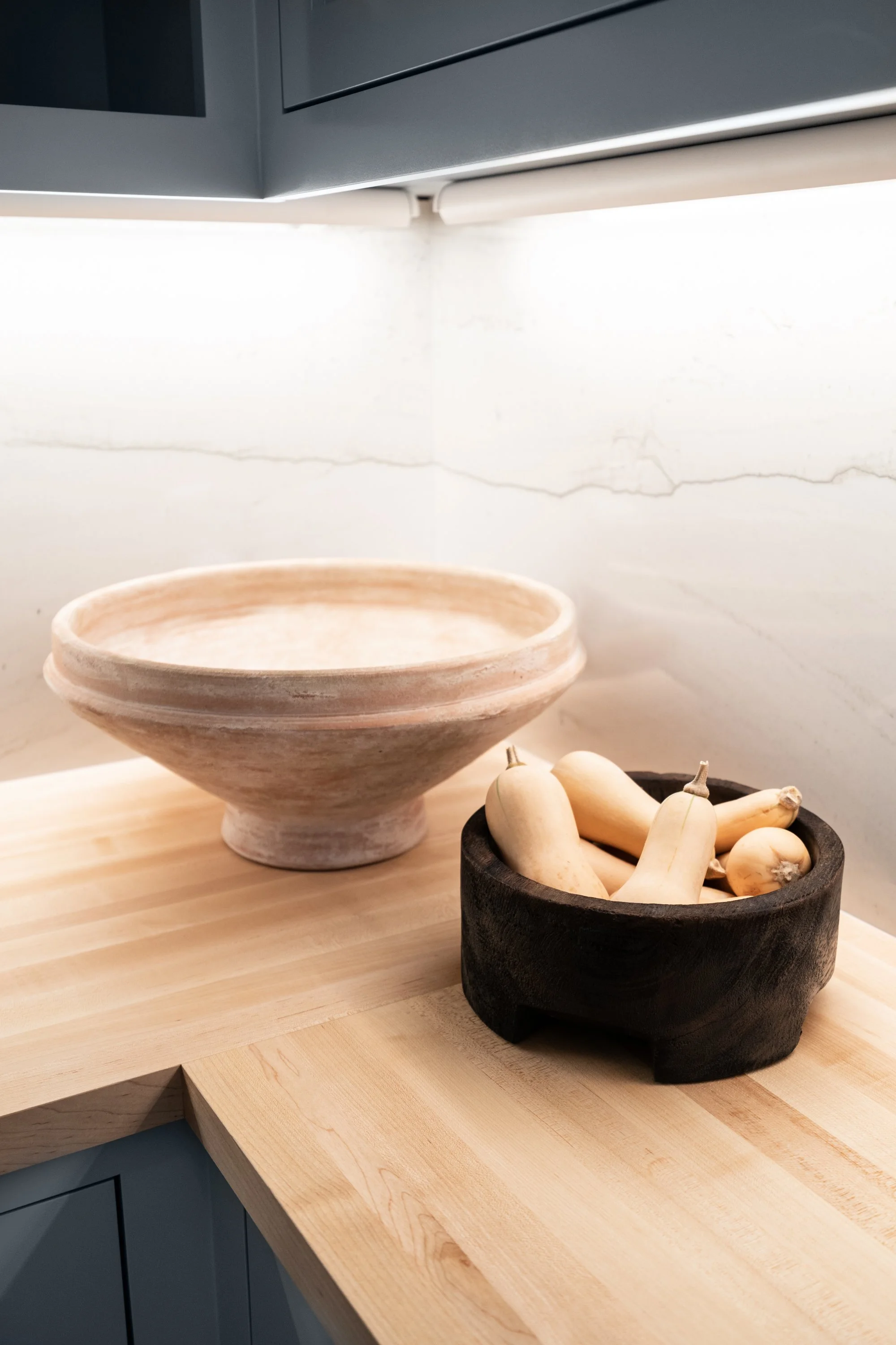 “I’ll start by saying that until this project, I have always relied on my own design sense. I felt comfortable knowing my style and translating it to reality. Given the scope and size of this project, we engaged a designer, Mimi Estelle Studio. Mimi was absolutely amazing, highly creative and professional. She found the balance we were seeking between function, light tones and wood. She challenged us to be bold in our hardware, fixtures, use of stone and arches. The floor plan is mindful of our lifestyle and large family. The result is a highly functional, modern farmhouse with an hint of traditional elegance. We are so pleased and beyond happy with our new space. It’s absolutely stunning and fits us and the rest of the home perfectly. Thank you, Mimi. You’re simply the best!”