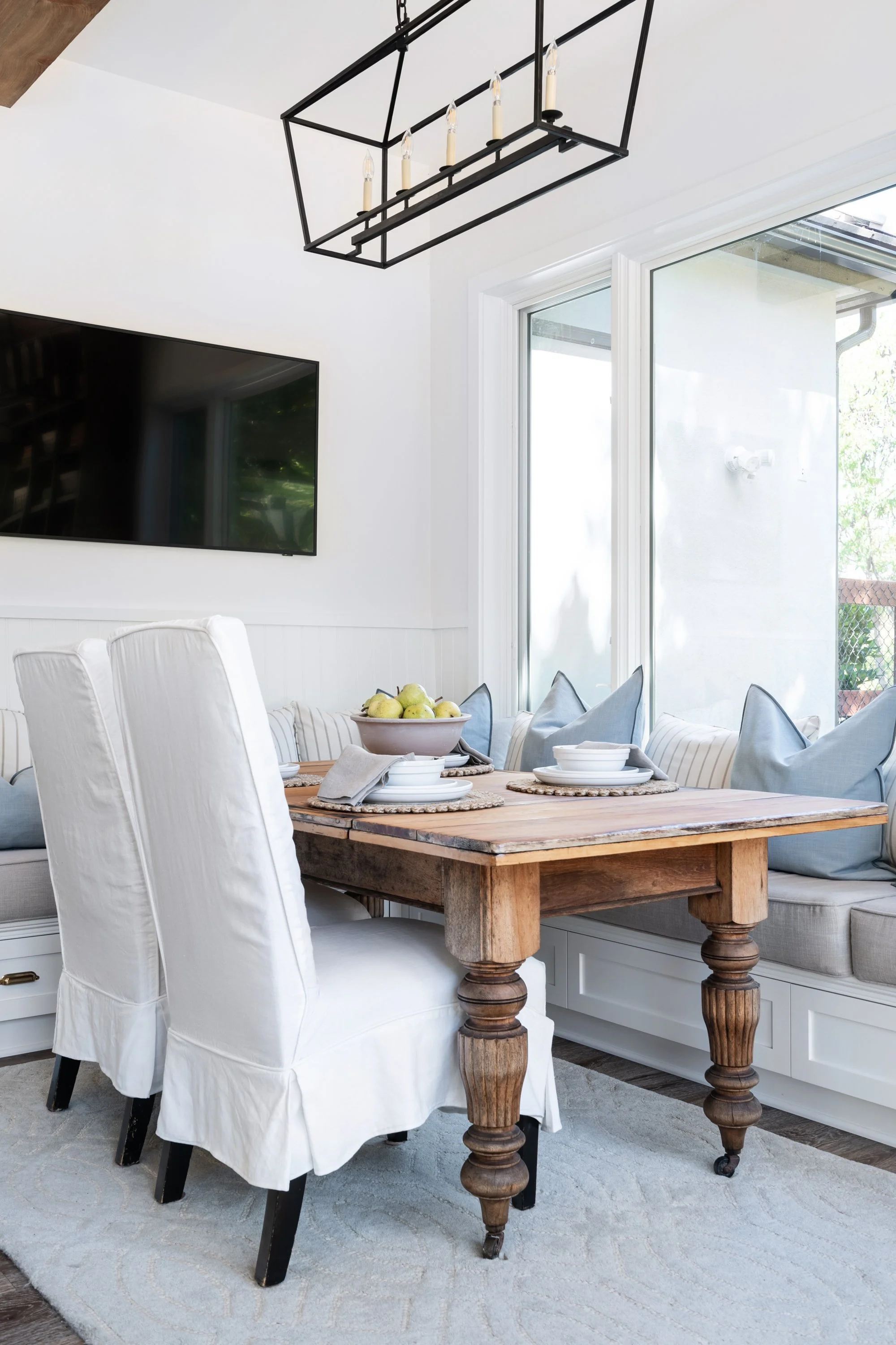 Appropriately named “Egg Ranch”, this project consisted of expanding the existing kitchen to accommodate their love of cooking and food preparation. Natural materials and light were harnessed in an effortless way to make being in the space a joy at all times of the day. A design influence of rustic texture and southern charm were spread throughout the home. The project scope included a new kitchen, walk-in pantry, breakfast nook, dining room bar and laundry room.